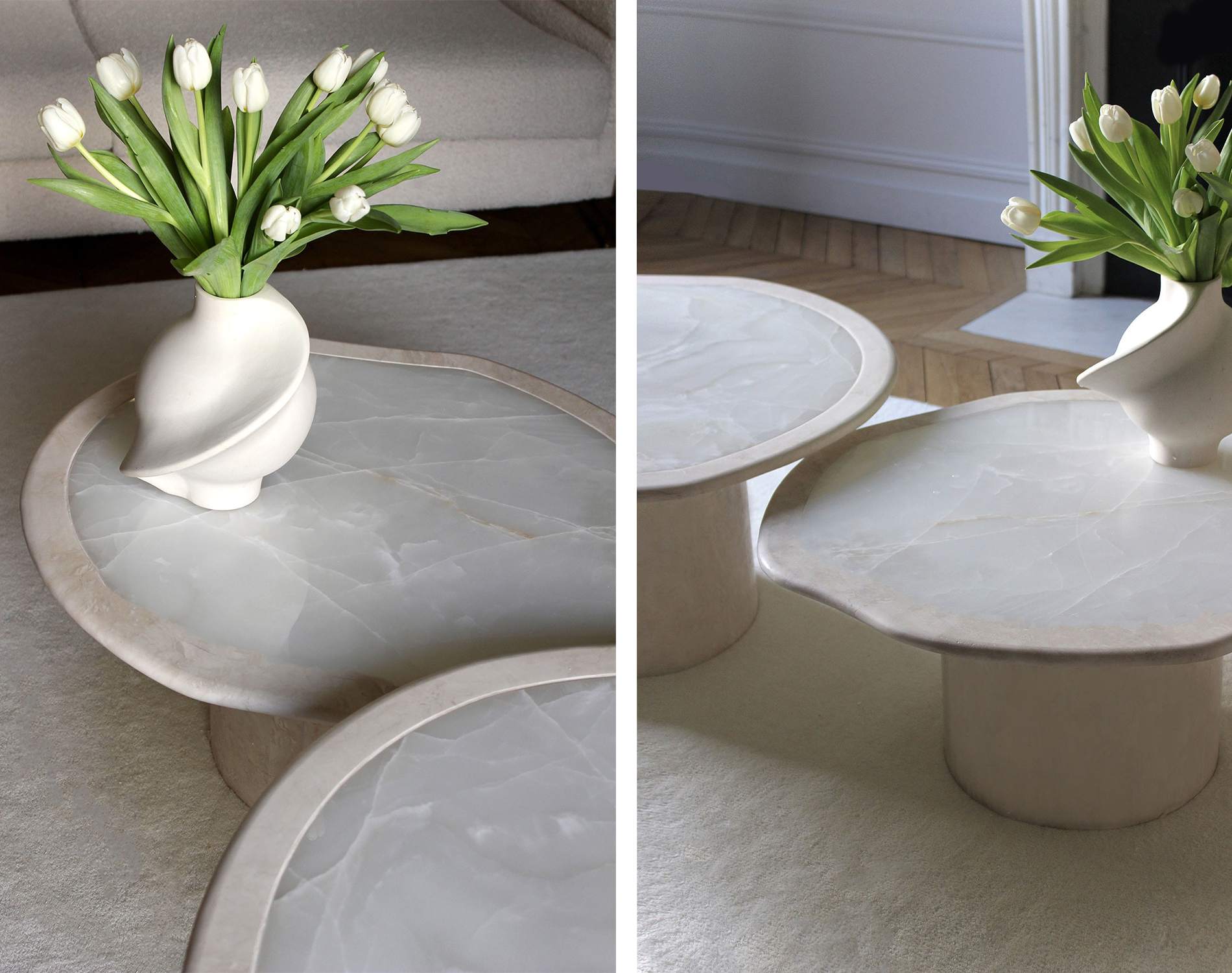 Los muebles de mármol integran perfectamente el encanto de la piedra en la vida cotidiana, equilibrando textura y diseño.