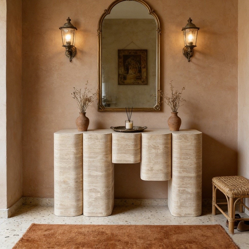 Perfecta para interiores modernos, minimalistas o de lujo, esta mesa consola es más que una superficie: es una pieza central que transforma cualquier recibidor, pasillo o sala de estar en un espacio de estilo sofisticado y atemporal.